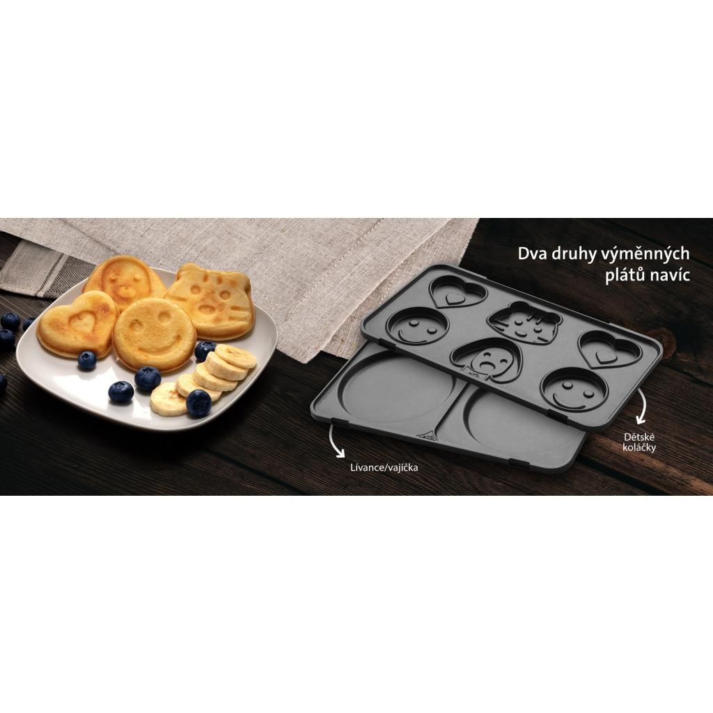 Pre milovníkov rýchlych sladkých a slaných raňajok a svačiniek pripravila ETA praktický sendvičovač 6 v 1, v ktorom nájdete 6 druhov vyberateľných výmenných dosiek - sendvič trojúholník, sendvič lastúra, vafle, gril/panini, detské koláčeky, lievance.