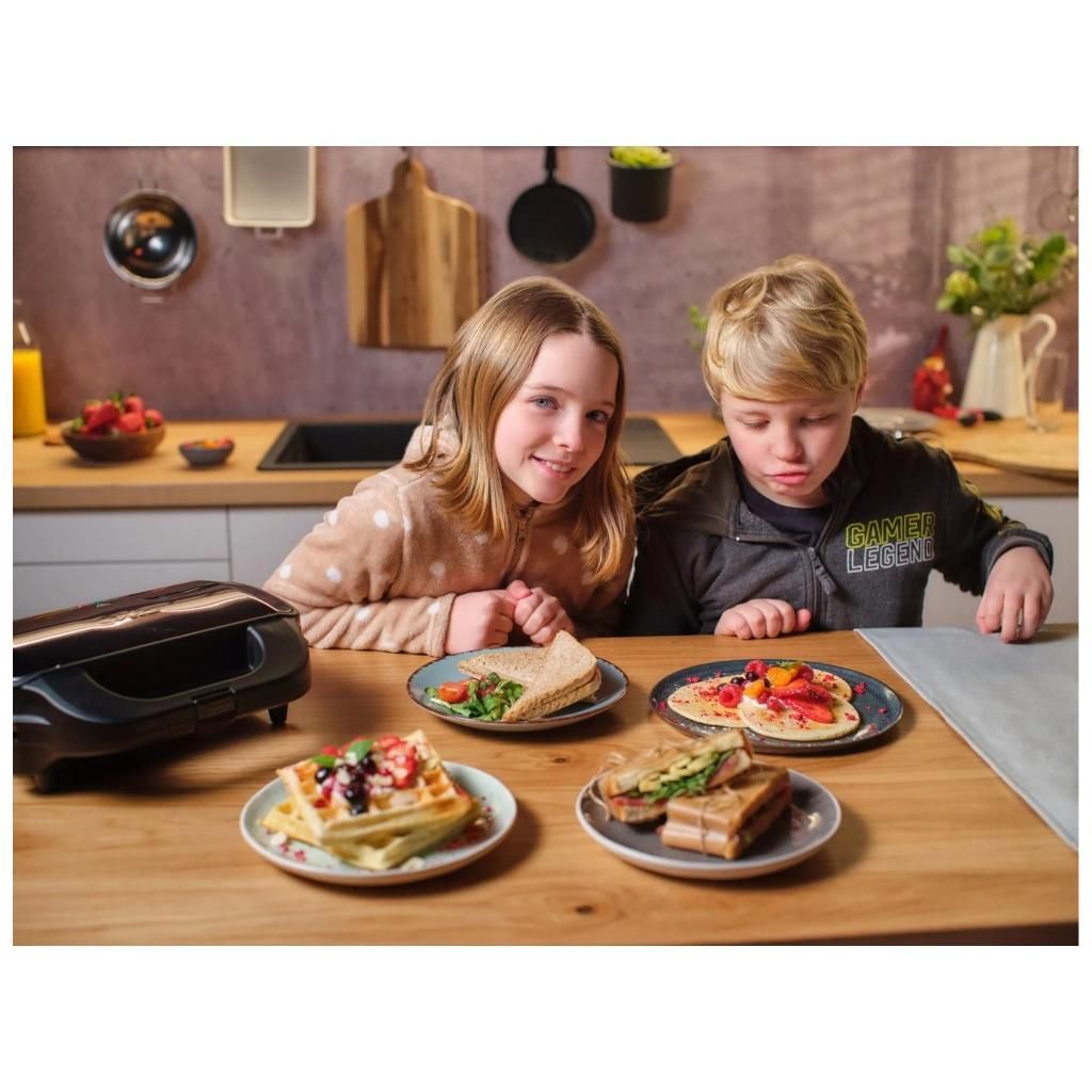 Platničky majú nepriľnavý povrch a ľahko sa čistí. Inovované vlaflovacie dosky sú vyššie, takže si vychutnáte skutočne nadýchané a veľké wafle. Sendvičovač disponuje kontrolkou prevádzky a nahriatie, protišmykovými nožičkami a možnosťou skladovať ho vo zvislej polohe. Praktický pomocník, s ktorým vykúzlite chutné zapečené sendviče, panini, vafle, opečené hrianky či grilované pochúťky.