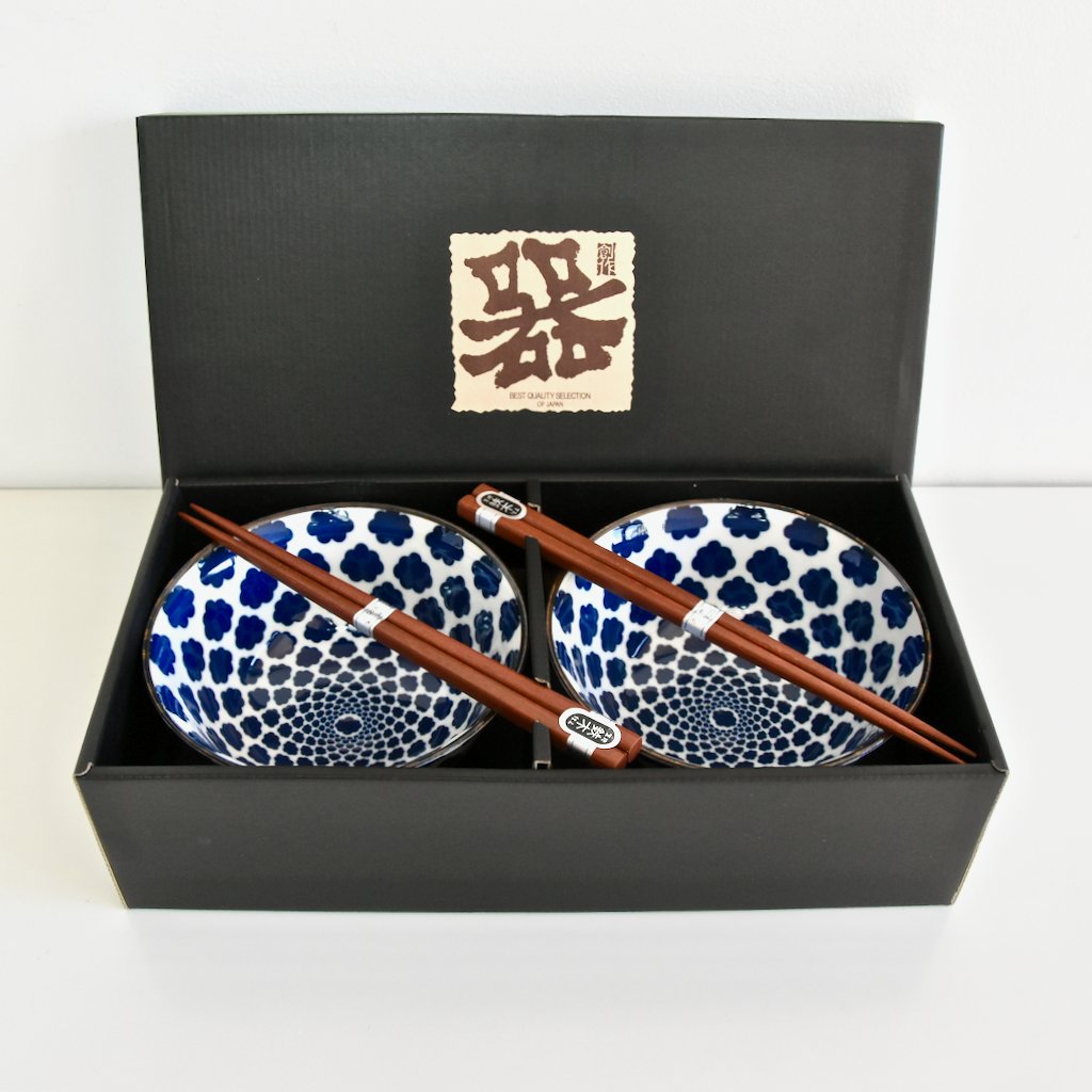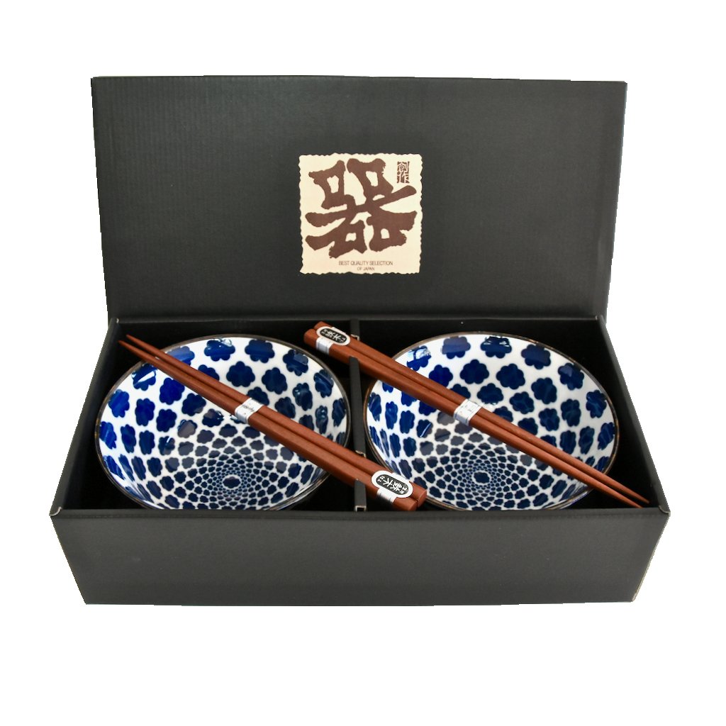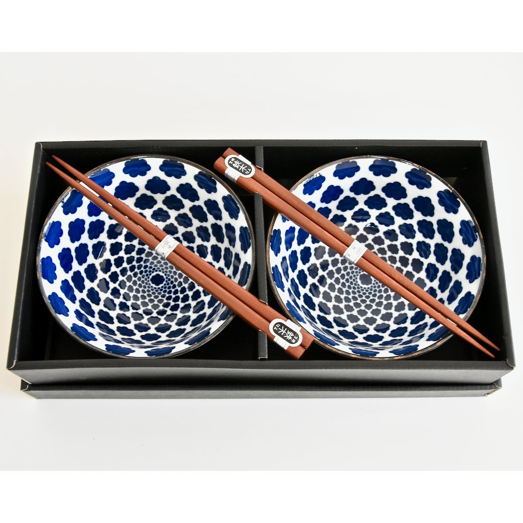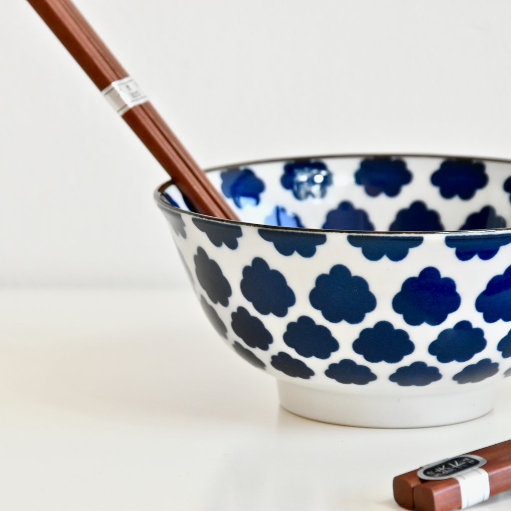 Veľká misa WHITE WITH BLUE CLOUD 400 ml, sada 2 ks s jedálenskými paličkami, MIJ