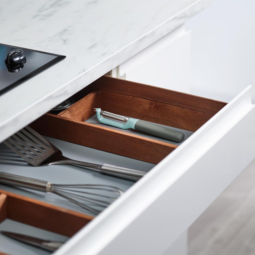 - Kompaktné prevedenie umožňuje ľahké uloženie do zásuvky medzi ostatné kuchynské pomôcky, takže budete mať škrabku vždy po ruke, kedykoľvek ju budete potrebovať.