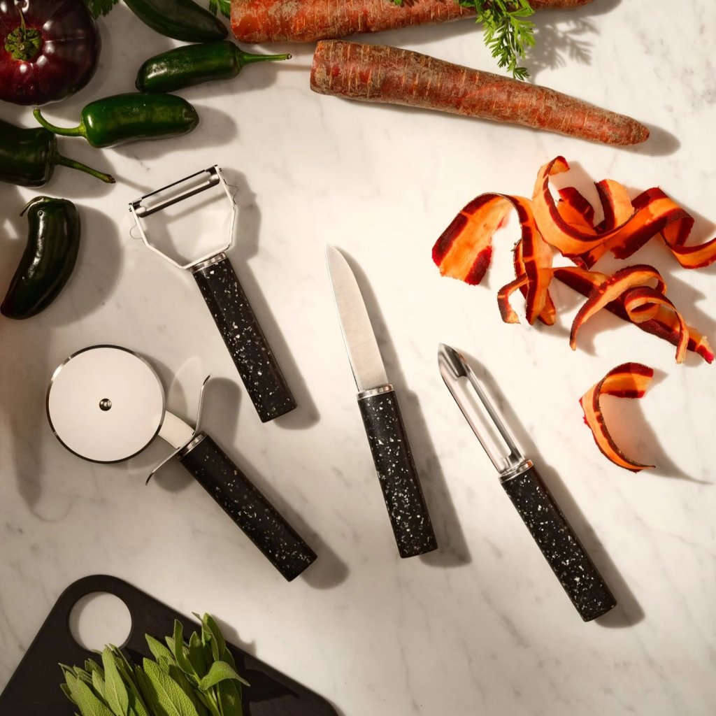 - ideálne na lúpanie zemiakov, jabĺk, uhoriek a iného ovocia a zeleniny bez zbytočného odpadu