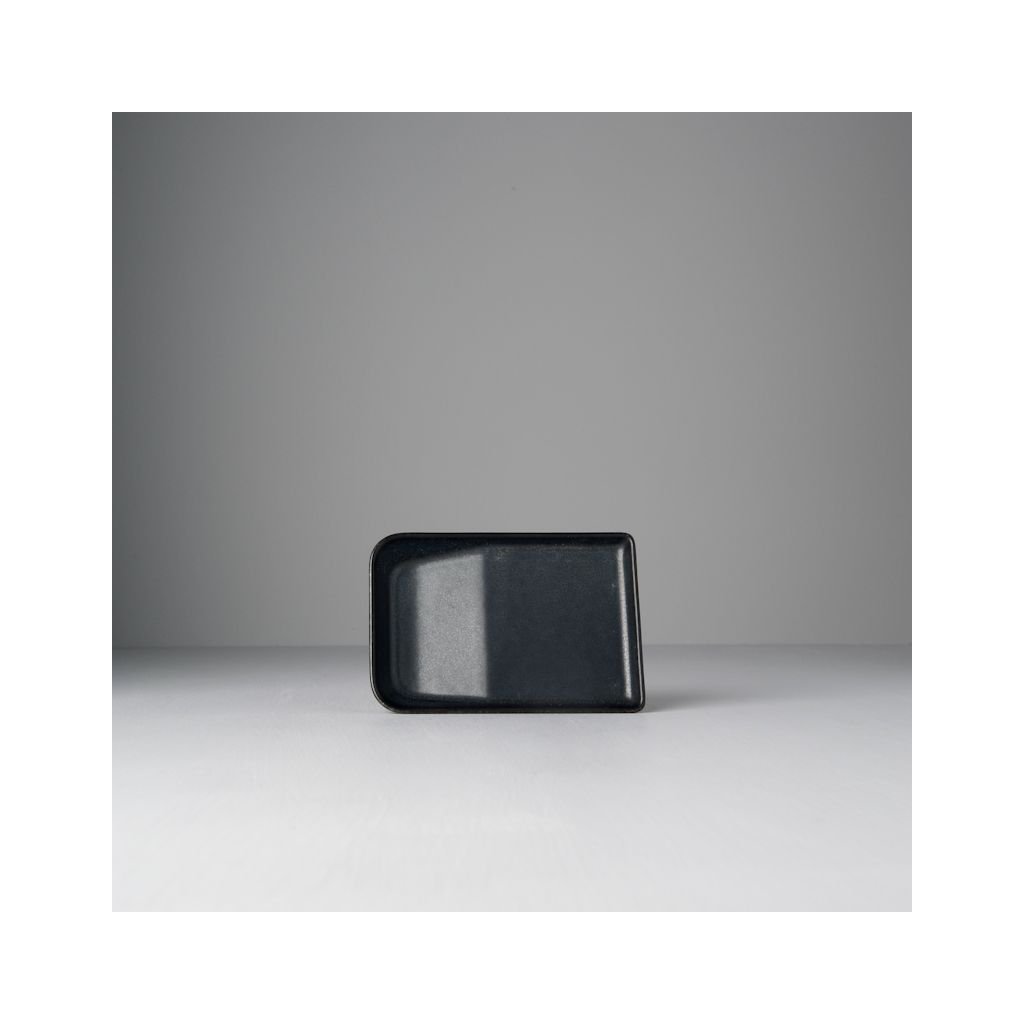 Štvorcová miska z kolekcie Ibushi. Čierna lesklá miska má čiastočne zkosené dno.