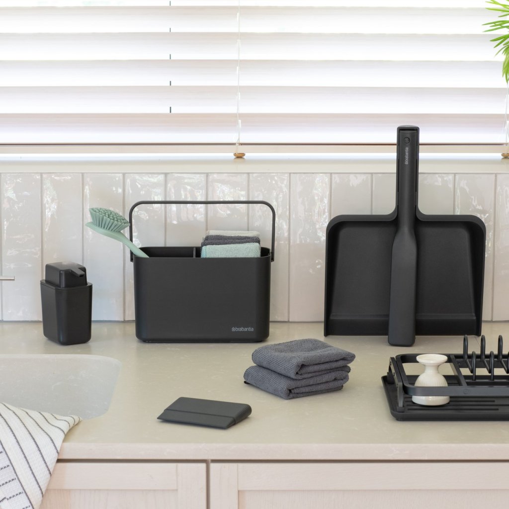 - súprava na upratovanie Brabantia SINKSIDE v tmavosivej farbe je ideálny pre rýchle a efektívne upratovanie drobných nečistôt v kuchyni alebo domácnosti