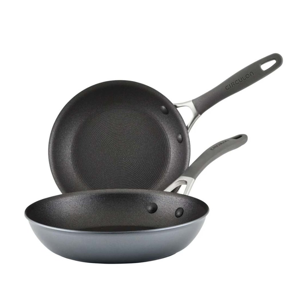 - sada 2 inovatívnych nepriľnavých panvíc Circulon SCRATCHDEFENSE A1 prináša revolučnú odolnosť proti poškriabaniu a extrémne dlhú životnosť