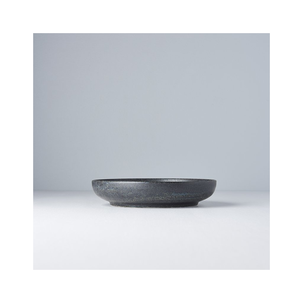 Plytký tanier s vysokým okrajom z kolekcie BB Black. Čierny originálny tanier má zaujímavý efekt.