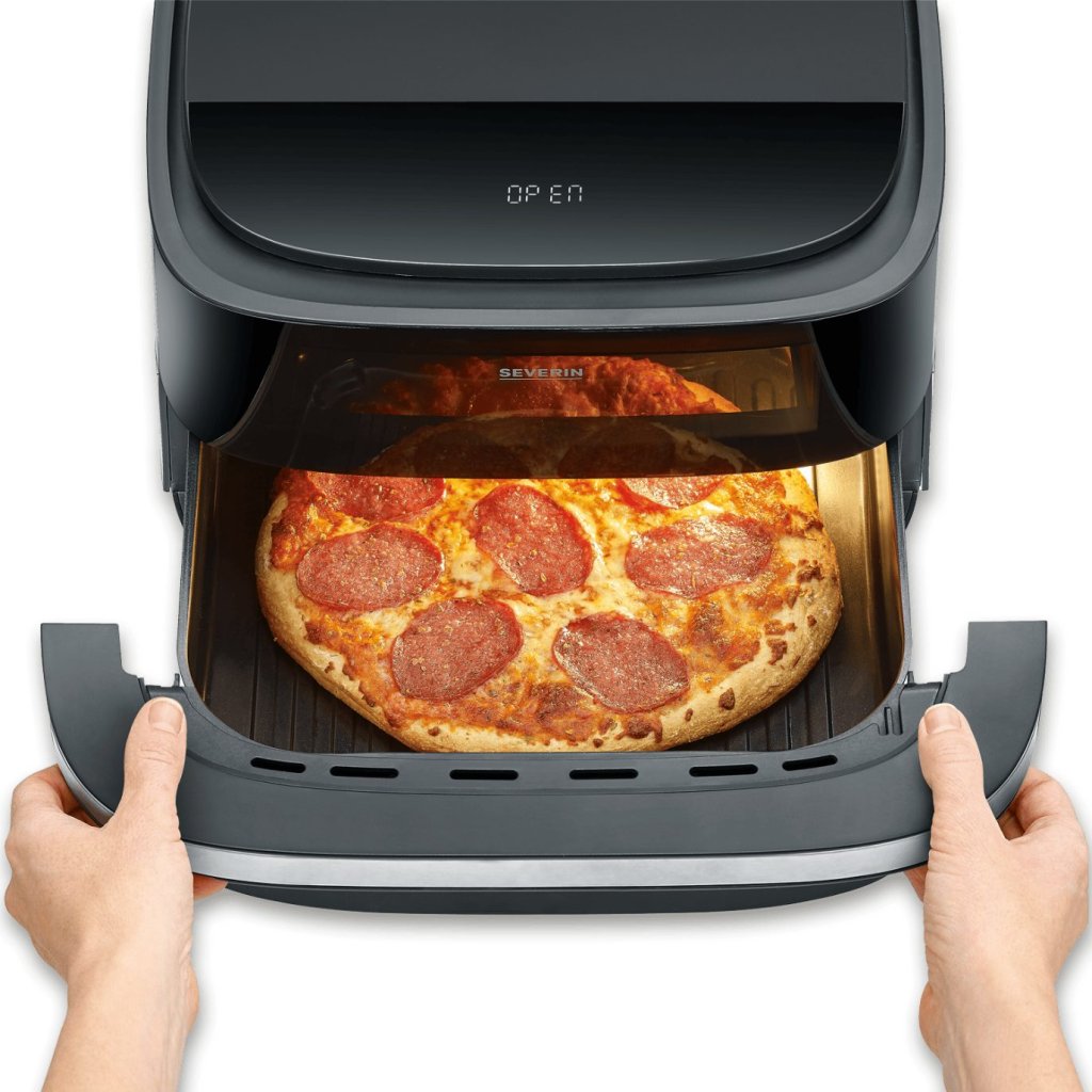 - teplovzdušná fritéza Severin FR 2464 umožňuje prípravu pokrmov bez oleja, rýchlo as minimálnou spotrebou energie