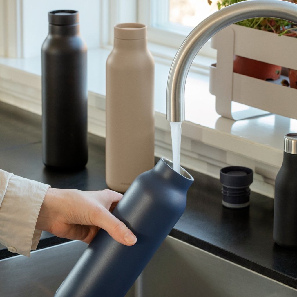 - fľaša je vyrobená z 90 % z recyklovanej nehrdzavejúcej ocele a podporuje ekologický prístup