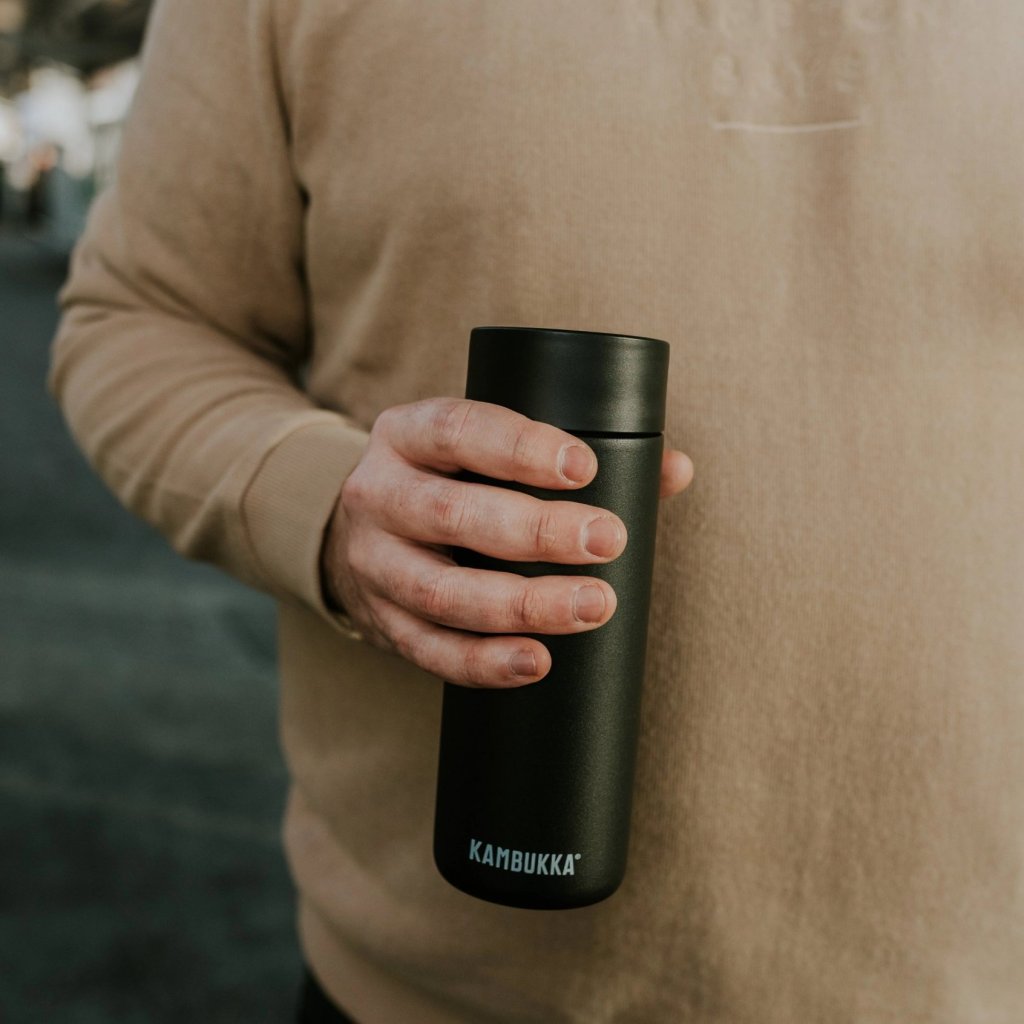 Termohrnček ETNA 500 ml, s viečkom RENO, matná čierna, nerezová oceľ, Kambukka