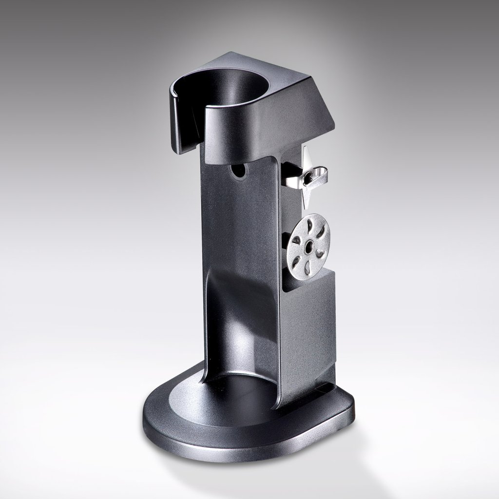Stojan na tyčový mixér DE LUXE a 4 nadstavce je vyrobený z odolného plastu v čiernej farbe. Moderný dizajn lahodí oku, kompaktný tvar zase šetrí miesto v kuchyni. Je možné postaviť ho na pracovnú linku alebo pripevniť na stenu. Váš mixér bude uprataný a pritom stále pekne po ruke. Rozmer stojana je 19 x 10 x 10 cm.