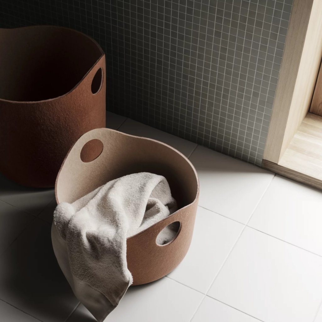 - univerzálny úložný kôš vyrobený z mäkkej a odolnej plsti, ktorá dodáva interiéru teplý a príjemný vzhľad