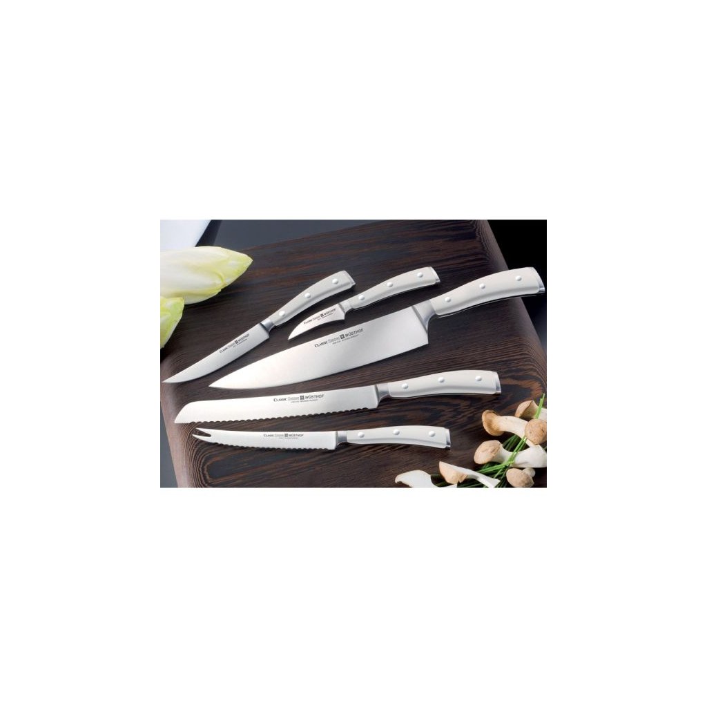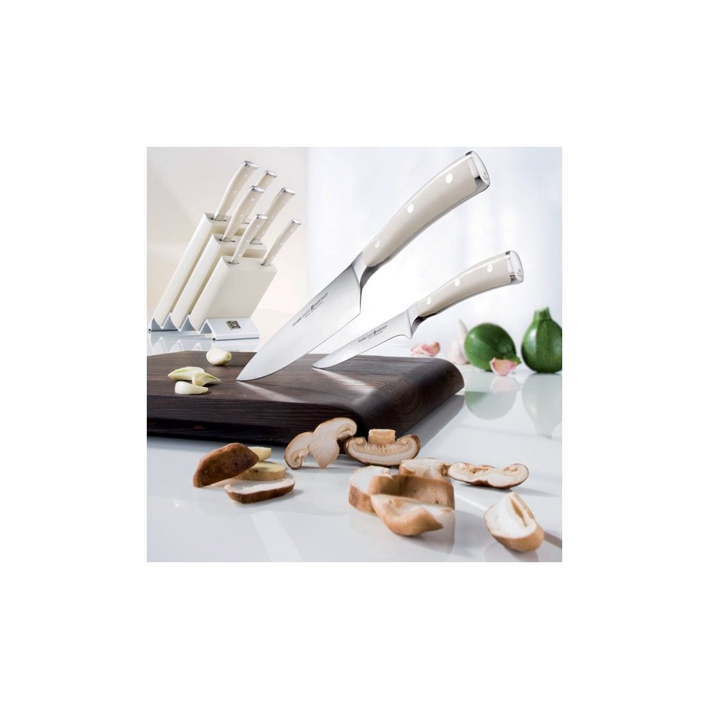 Univerzálny nôž Classic Ikoncrème je vďaka tenkej a pomerne krátkej čepeli ideálny na rôznorodé úkony: na čistenie, krájanie a tiež na porciovanie. Nakrájate s ním mäso, ryby, zemiaky, surovú zeleninu, ovocie, ale i tvrdé údeniny a salámy.