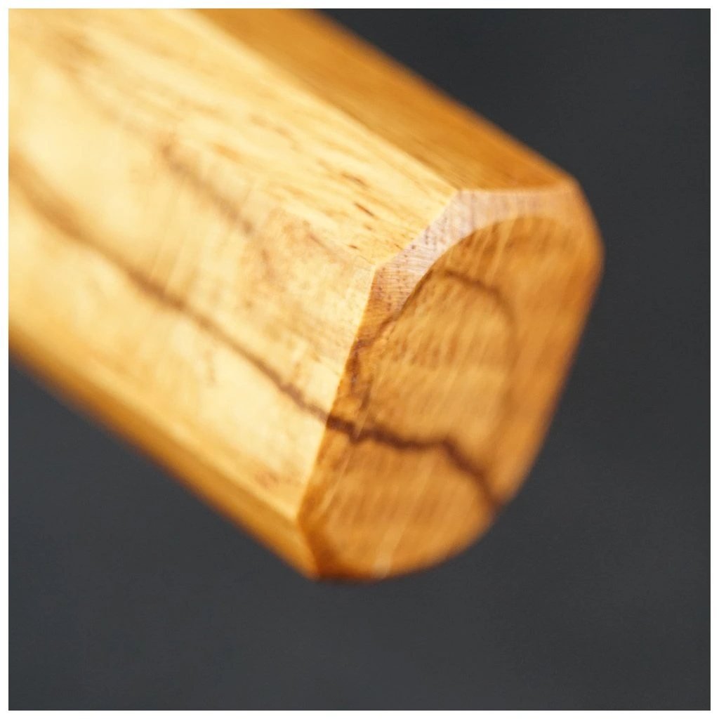 - ergonomická rukoväť v tvare osemuholníka z japonského duba poskytuje pohodlné a bezpečné uchopenie, čím zvyšuje kontrolu pri krájaní