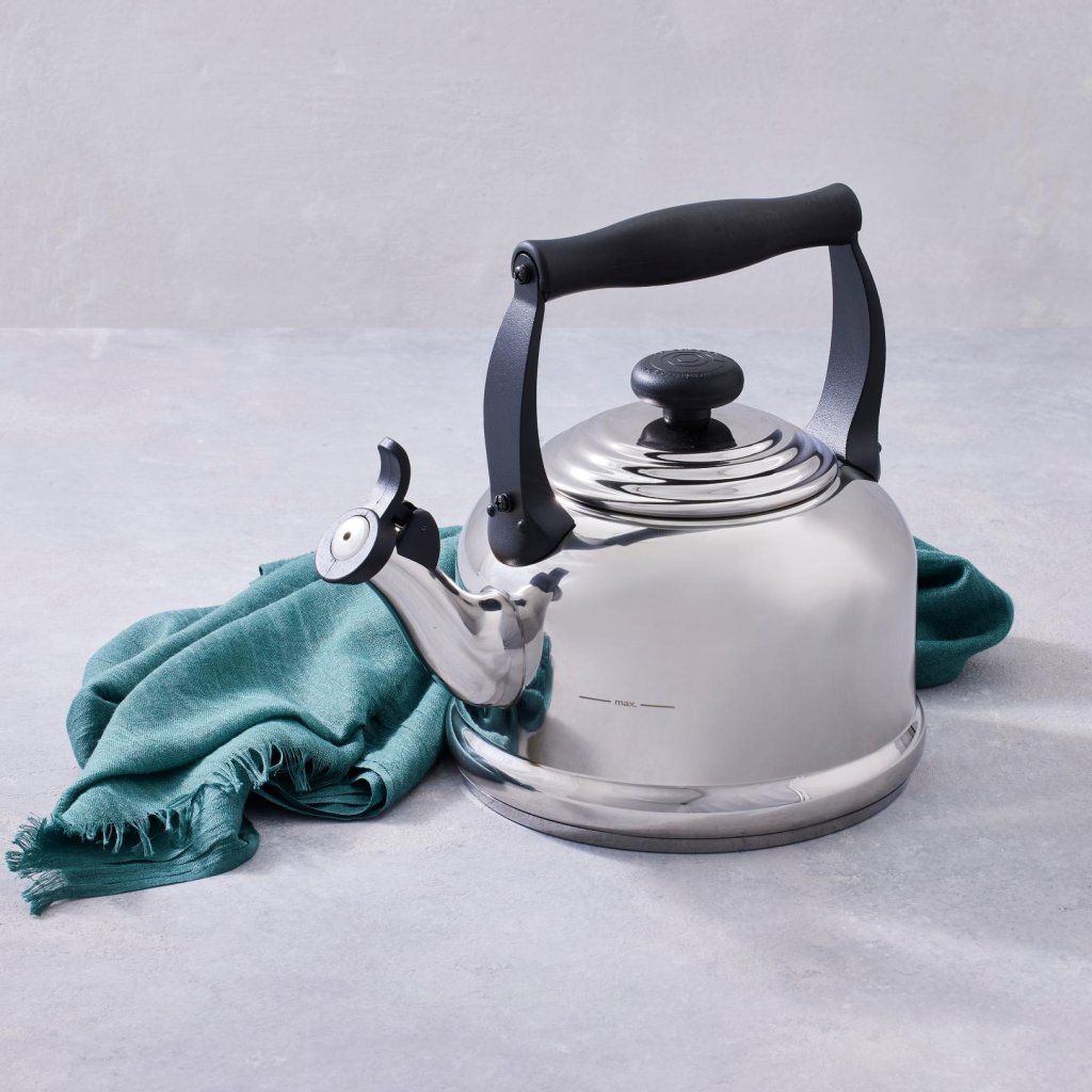 - Nerezová varná kanvica Le Creuset TRADITIONAL je elegantným a funkčným doplnkom do každej kuchyne, ktorý oznamuje dosiahnutie varu charakteristickým pískaním.