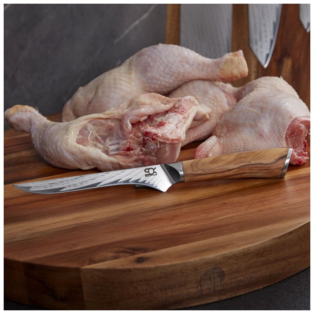 Vykosťovací nôž SOK OLIVE SUNSHINE DAMASCUS 13 cm, Dellinger