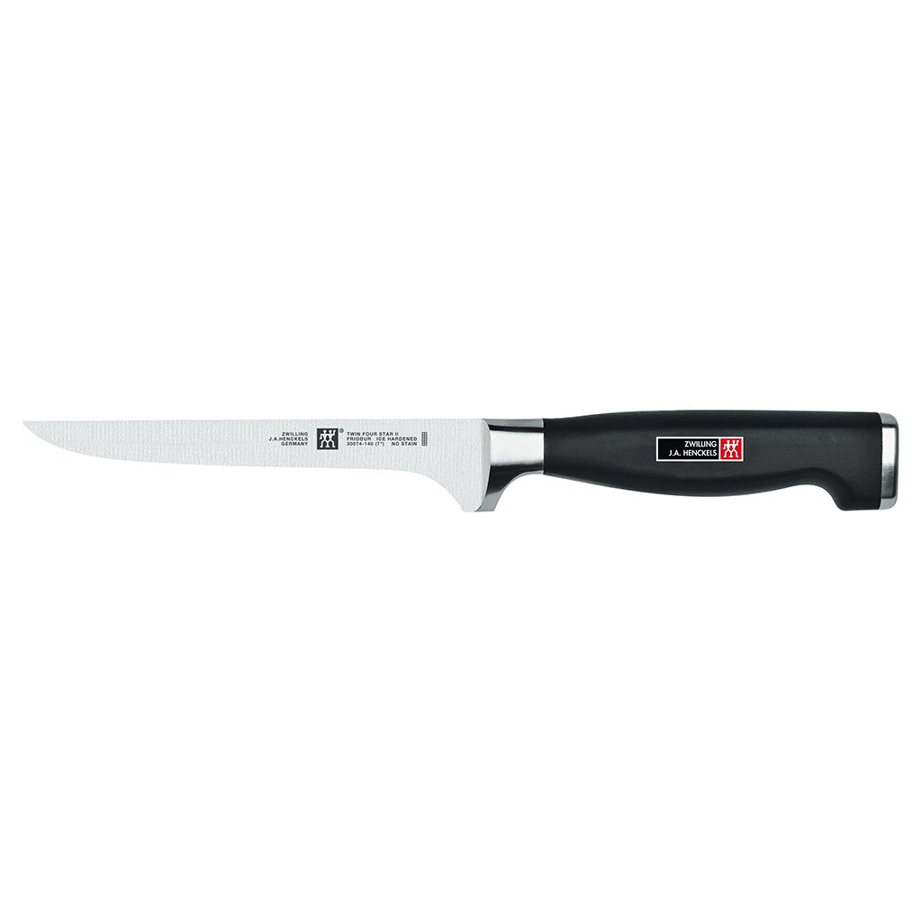 Vykosťovací nôž TWIN® Four Star II má štíhlu, charakteristicky zakrivenú čepeľ s rovným ostrím. Najlepšie sa hodí na rezanie mäsa od kosti. Môžete s ním odstraňovať šľachy, vykosťovať mäso či sťahovať kožu.