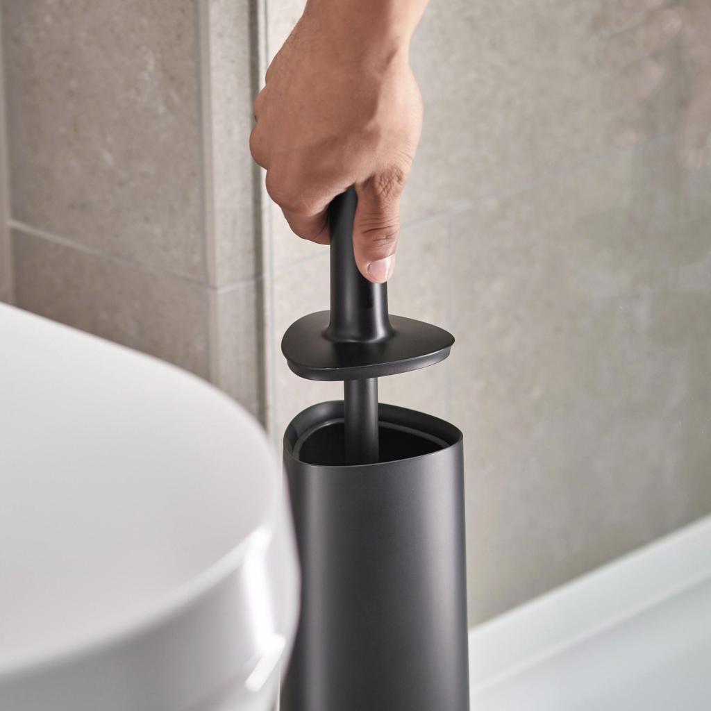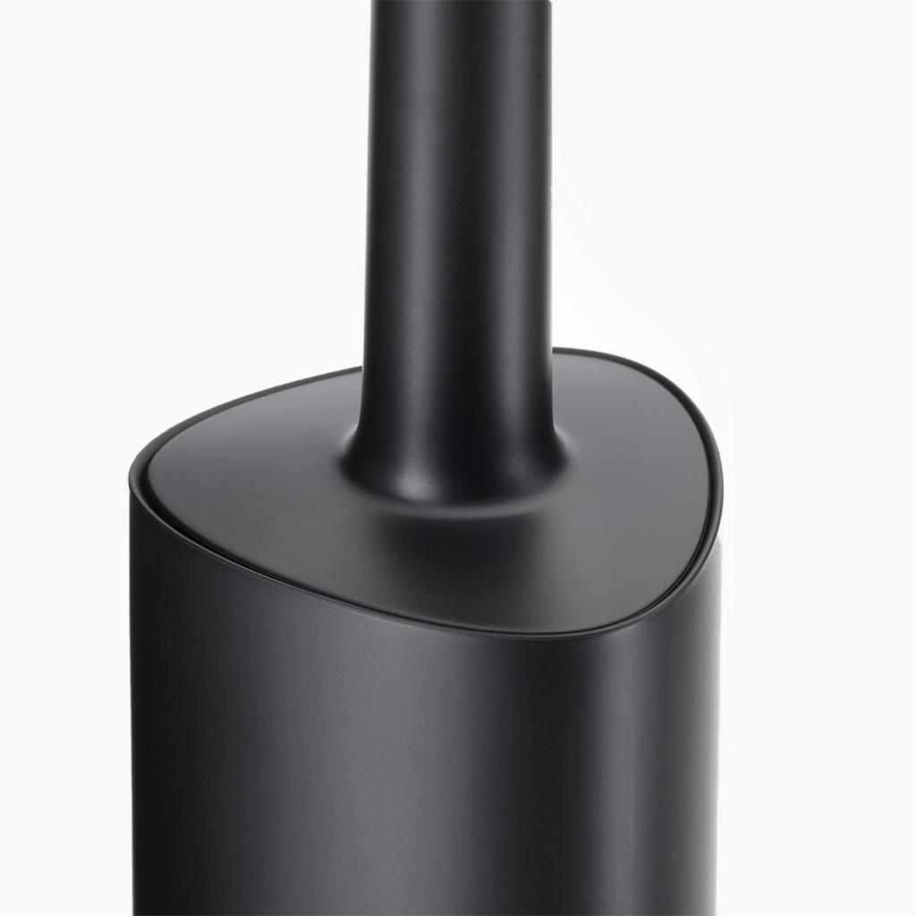 - Uzavretý stojan pomáha diskrétne skryť kefu a zároveň udržuje priestor okolo toalety čistý a organizovaný.