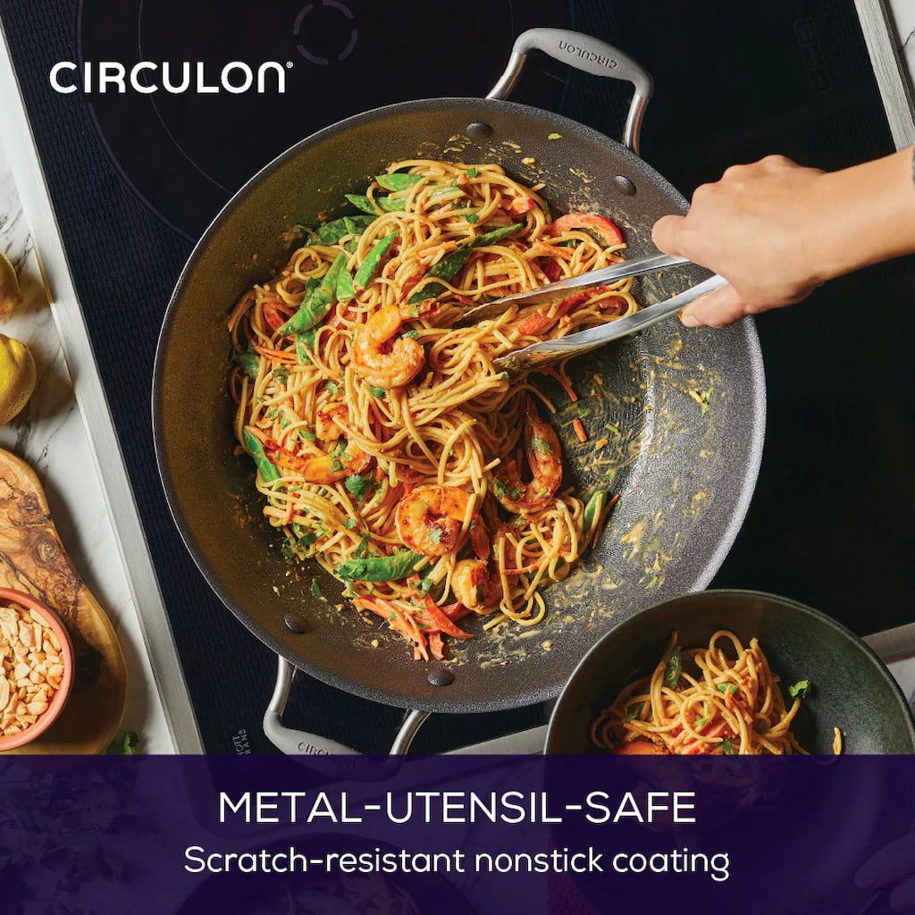 - inovatívna nepriľnavá wok panvica s nerezovou pokrievkou Circulon SCRATCHDEFENSE A1 prináša revolučnú odolnosť proti poškriabaniu a extrémne dlhú životnosť