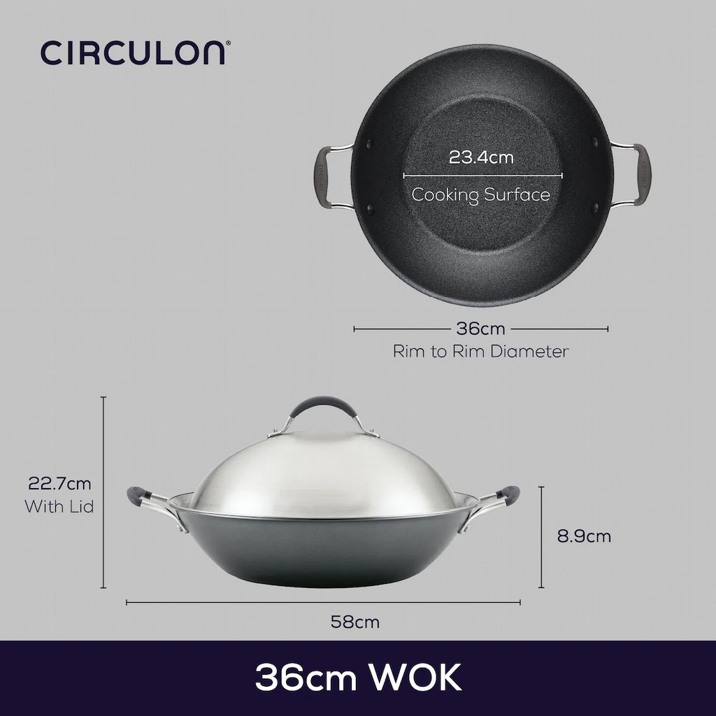 Wok na indukciu SCRATCHDEFENSE A1 36 cm, s pokrievkou, hliník, Circulon