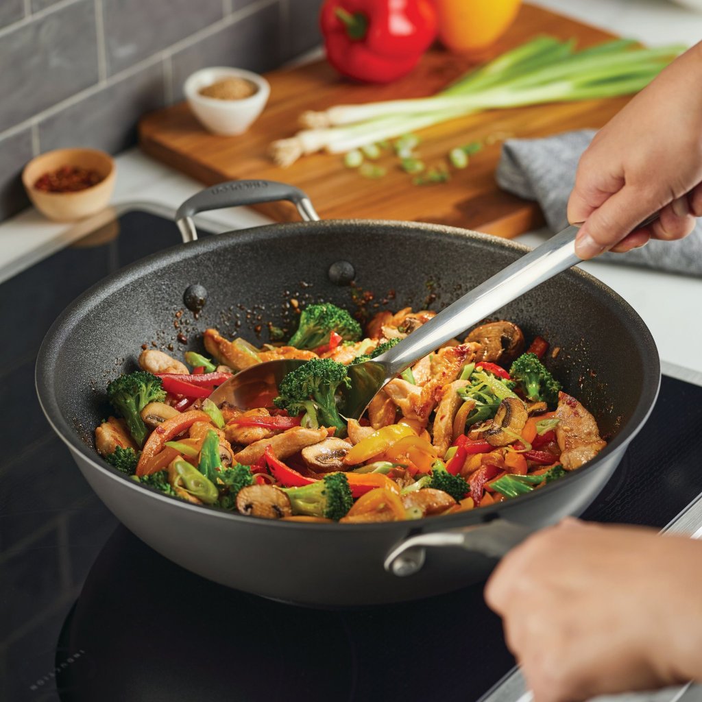 - inovatívna nepriľnavá wok panvica Circulon SCRATCHDEFENSE A1 prináša revolučnú odolnosť proti poškriabaniu a extrémne dlhú životnosť